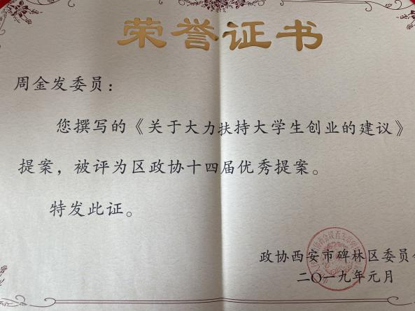 他有著企業(yè)家務真求實的深思熟慮。多年來,周金發(fā)十分注重調查研究,在繁忙的本職工作之余,提案撰寫等履職工作,共撰寫《關于健全治污減霾網格化管理體系的建議》《關于大力扶持大學生創(chuàng)業(yè)的建議》《關于弘揚企業(yè)家精神,壯大民營經濟的建議》等提案、多篇被評為“優(yōu)秀提案”。